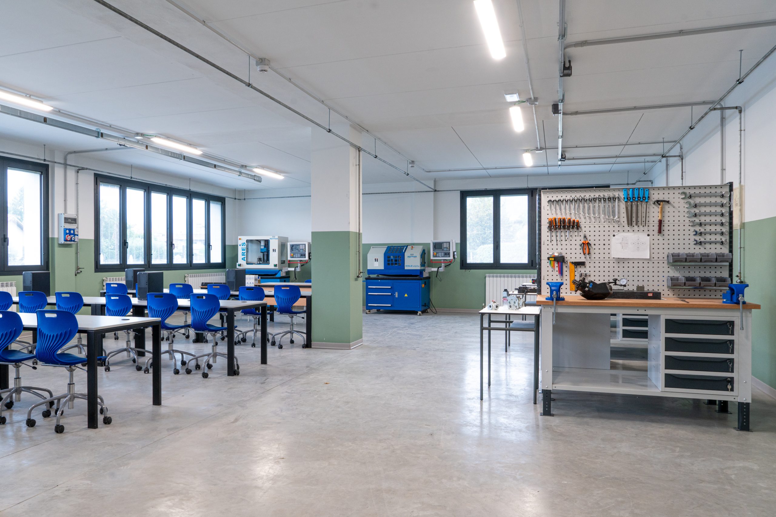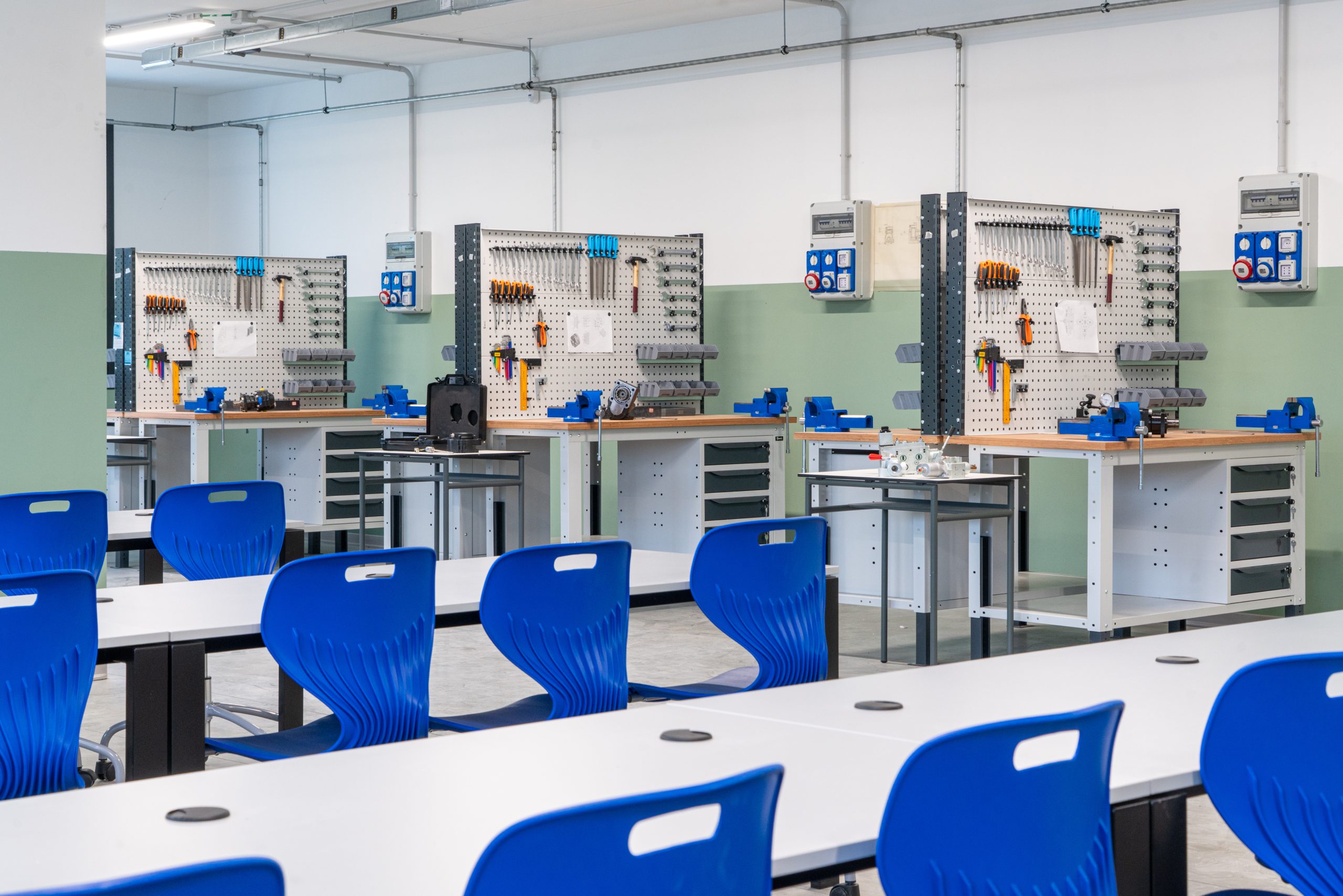 This objective materialized in just a few months with the design and construction of the new Mechatronics Laboratory, giving the institute a space for adopting an applied and realistic teaching methodology, able to directly meet the needs expressed by businesses. A fully equipped classroom where students of the “IPSMAT – Maintenance and Technical Assistance” program can acquire broad knowledge and skills in the design, construction, maintenance, and automation of mechatronic systems. Both theoretical and practical skills that are essential for tackling future professional challenges.